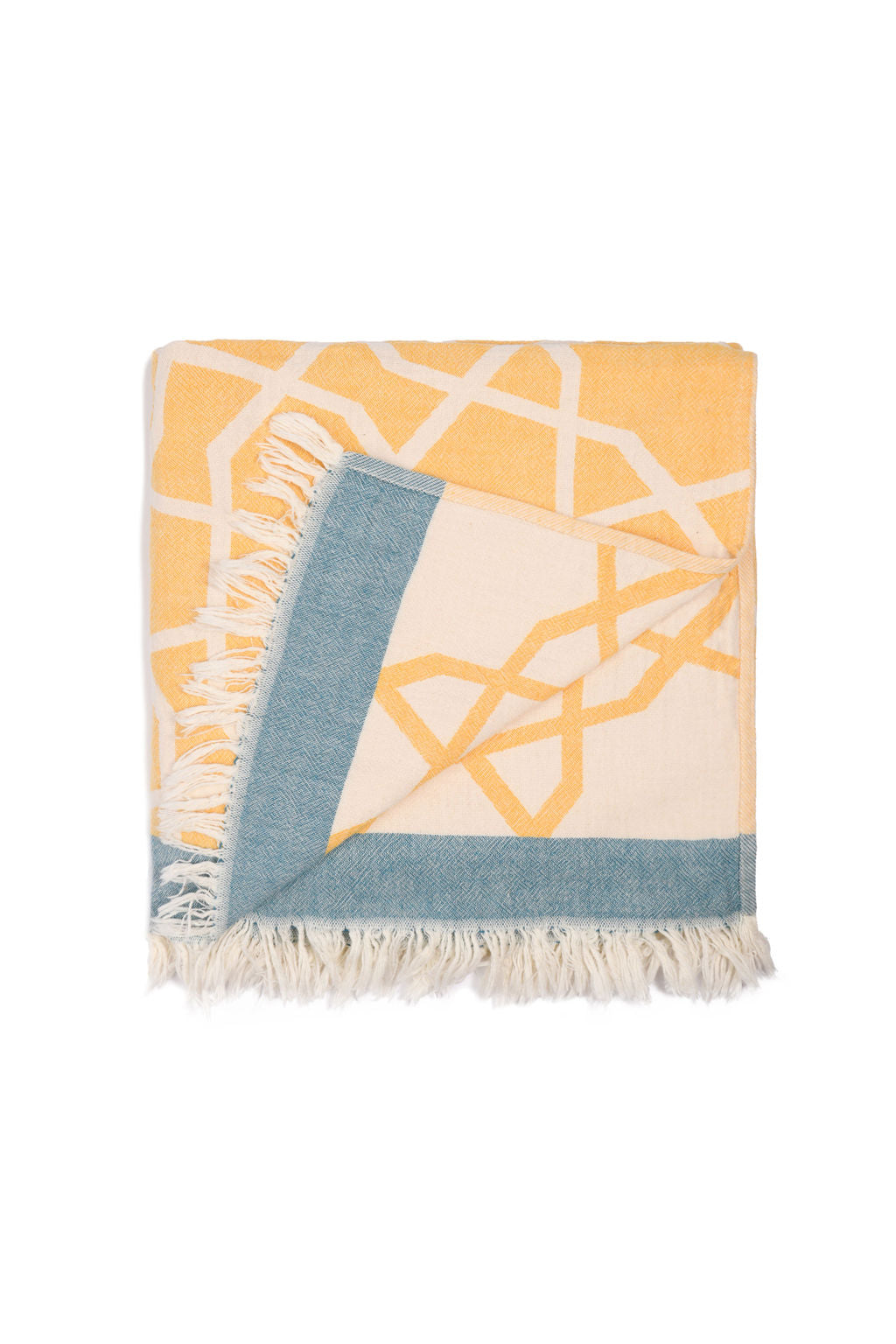 MARRAKECH | LUXURY BEACH TOWEL | SAFFRON - BLUE