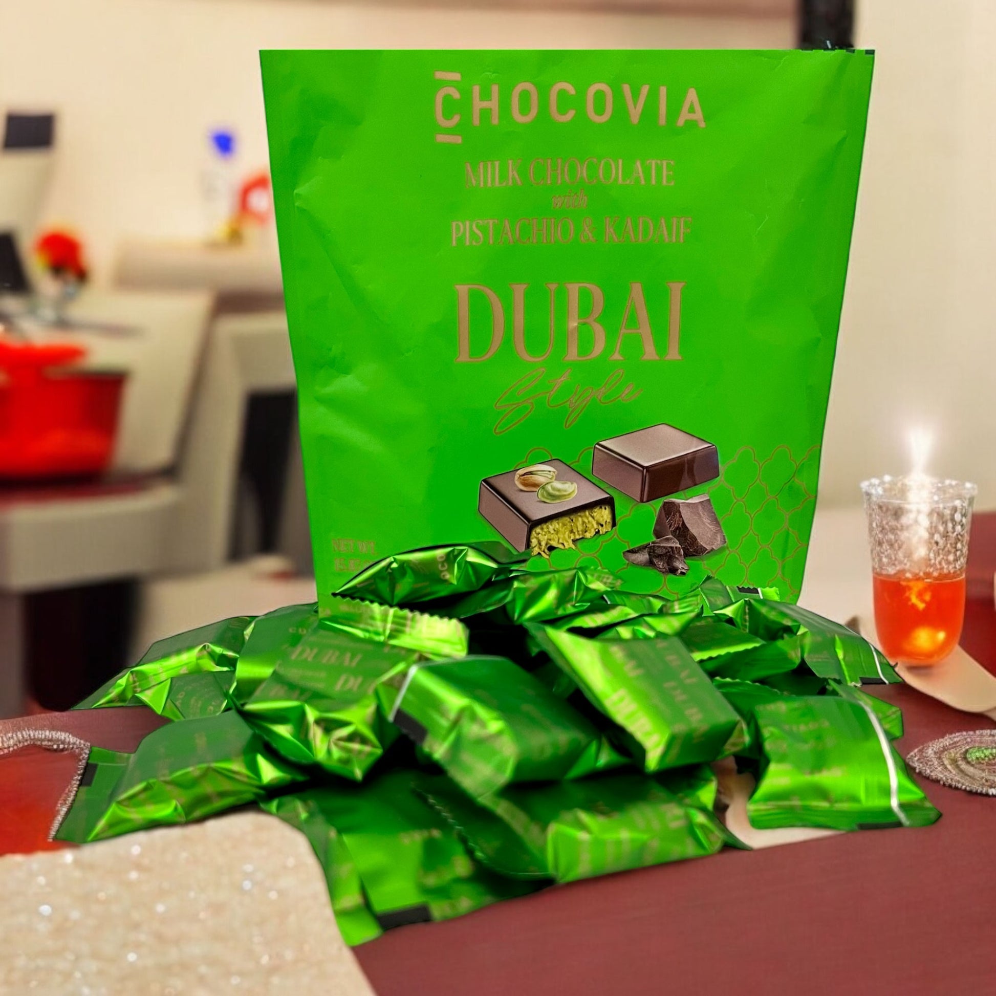 Chocovia Dubai Chocolate – Milk Chocolate with Pistachio & Kadaif, Individually Wrapped Gourmet Chocolates