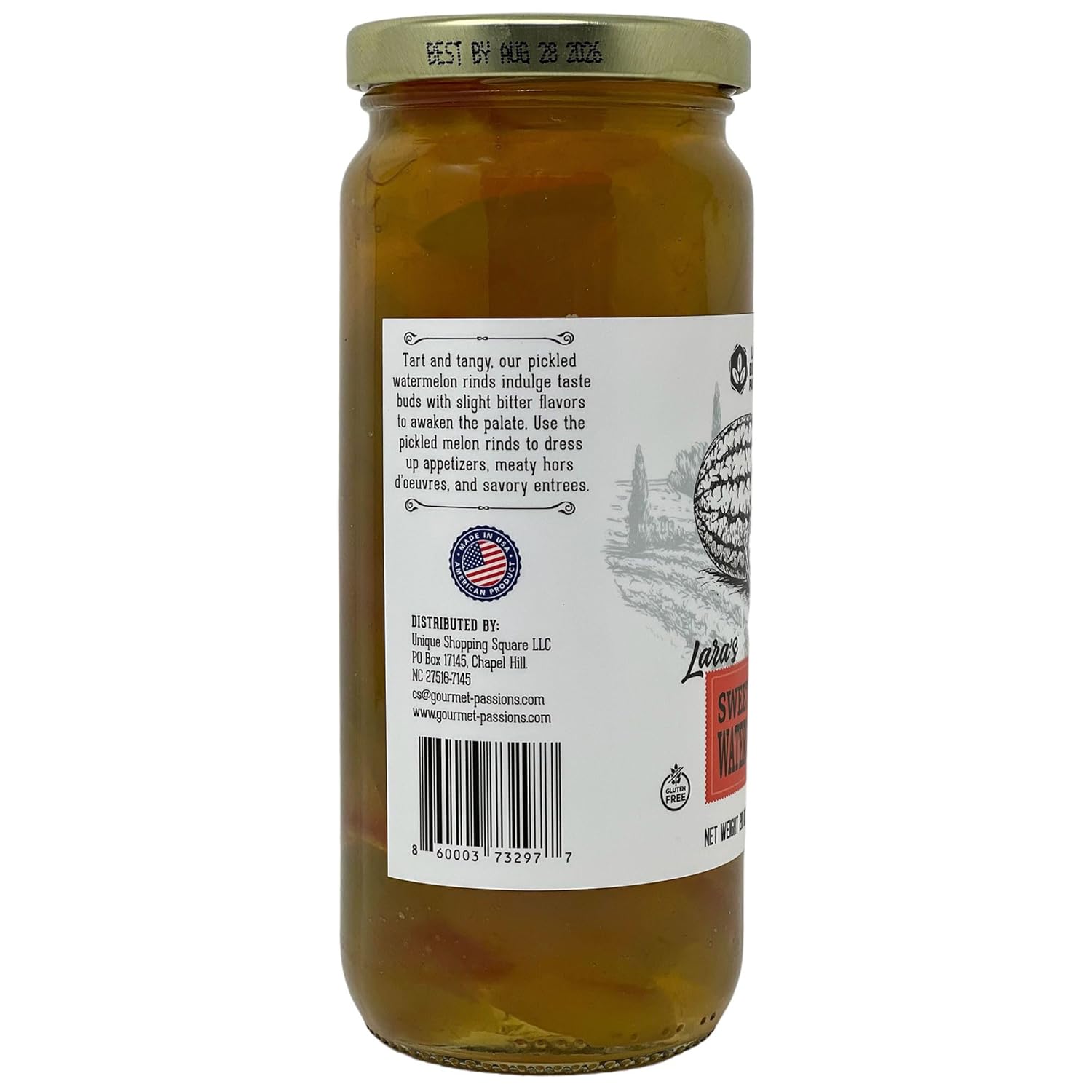 - Versatile Culinary Treat: Whether you're dressing up appetizers, jazzing up meaty dishes, or experimenting with new culinary creations, Lara's Sweet Pickled Watermelon Rind is your perfect partner in the kitchen.