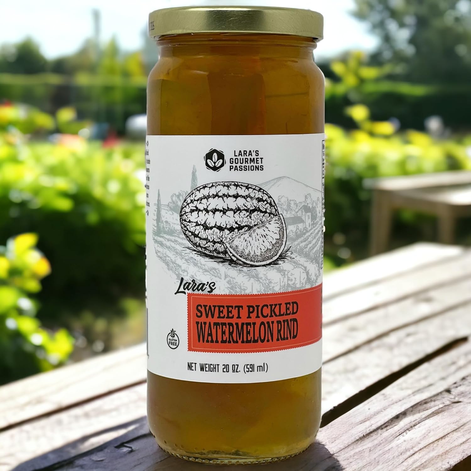 Elevate your dishes and surprise your guests with Lara's Sweet Pickled Watermelon Rind. Order now and embark on a culinary journey like no other!