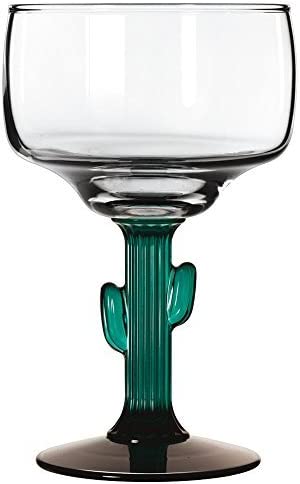 - The cactus-shaped stem on these margarita glasses is infused with color, creating a unique look that won’t fade over time.