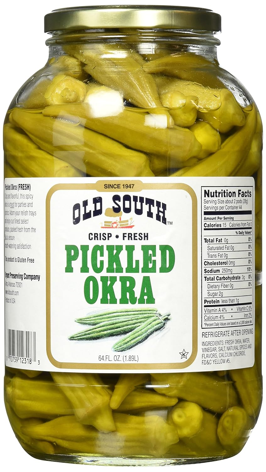 Crisp, spicy, and flavorful, Old South Crisp Fresh Pickled Okra is a must for parties and picnics. Adorn your relish trays and enjoy Old South's finest select produce, picked fresh from the field to ensure mouth-watering satisfaction.