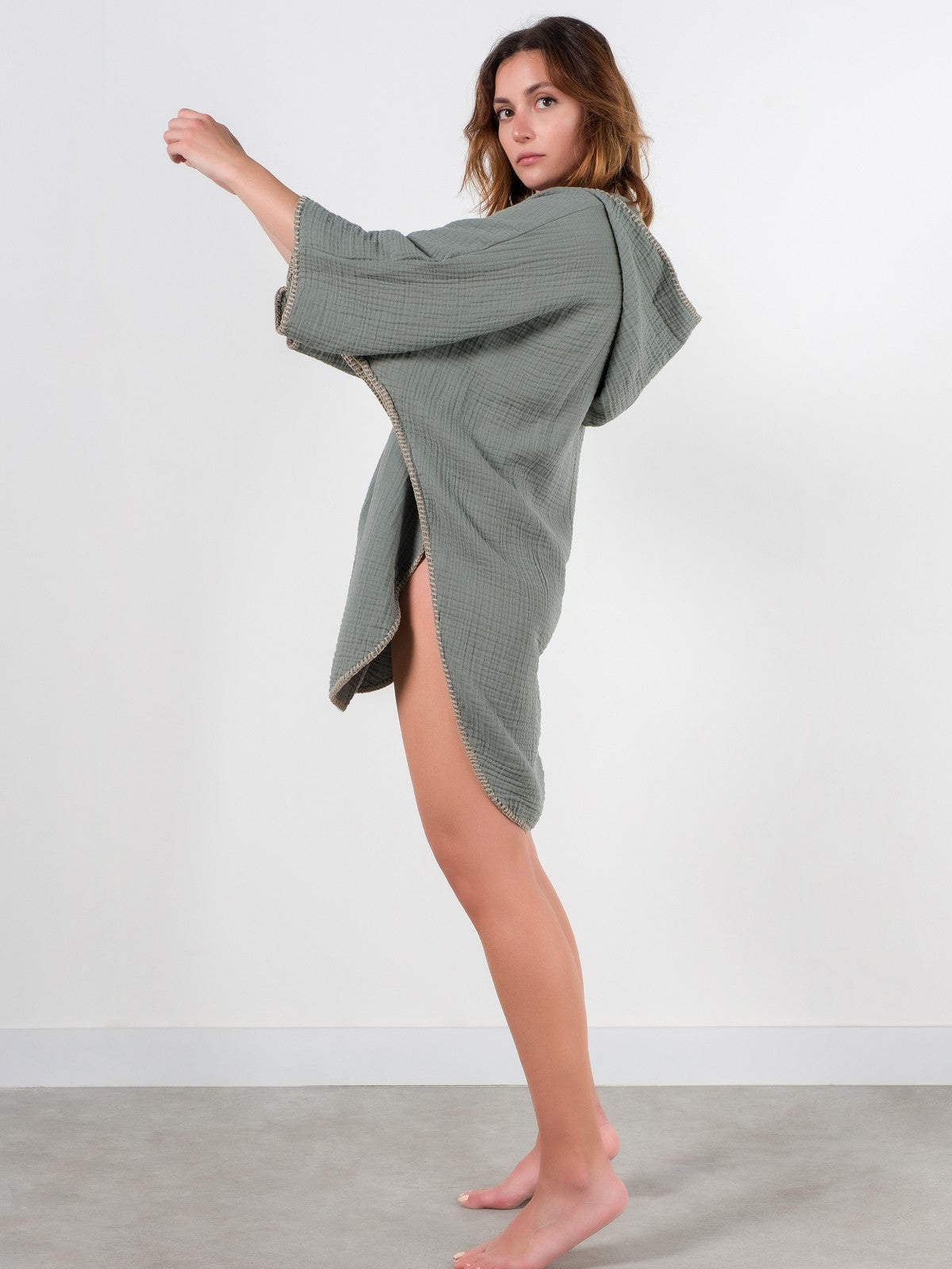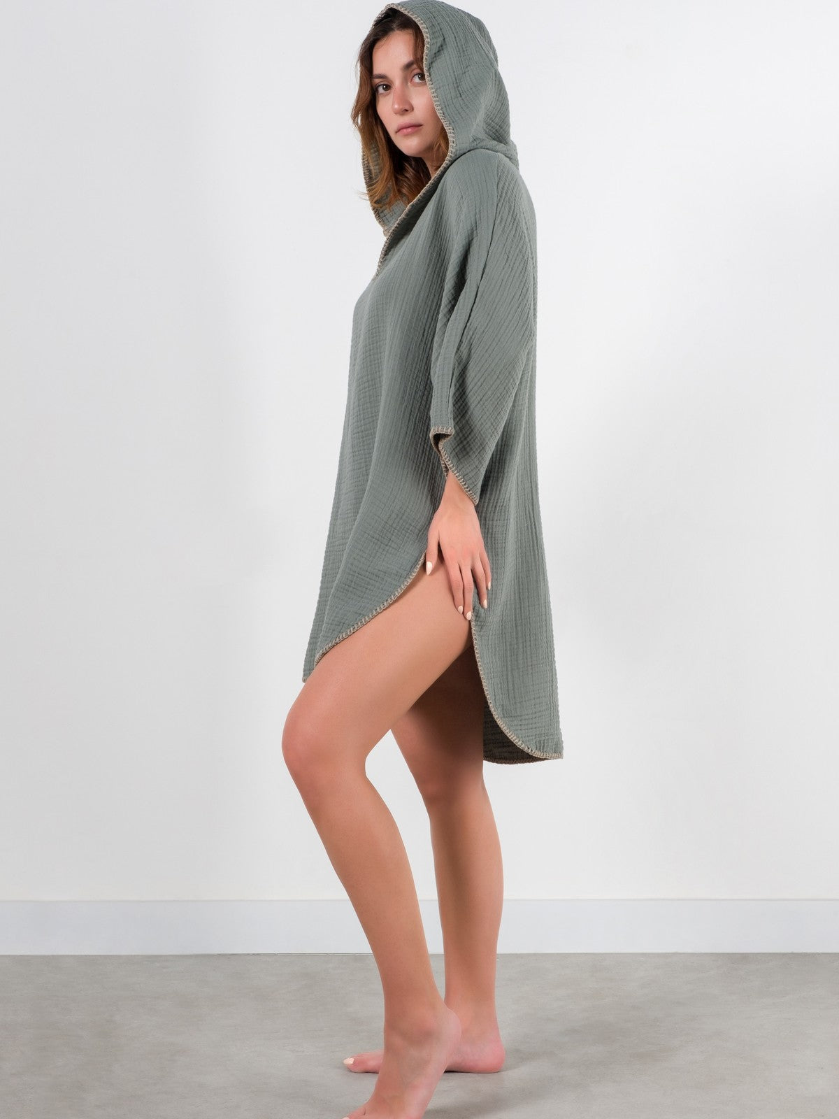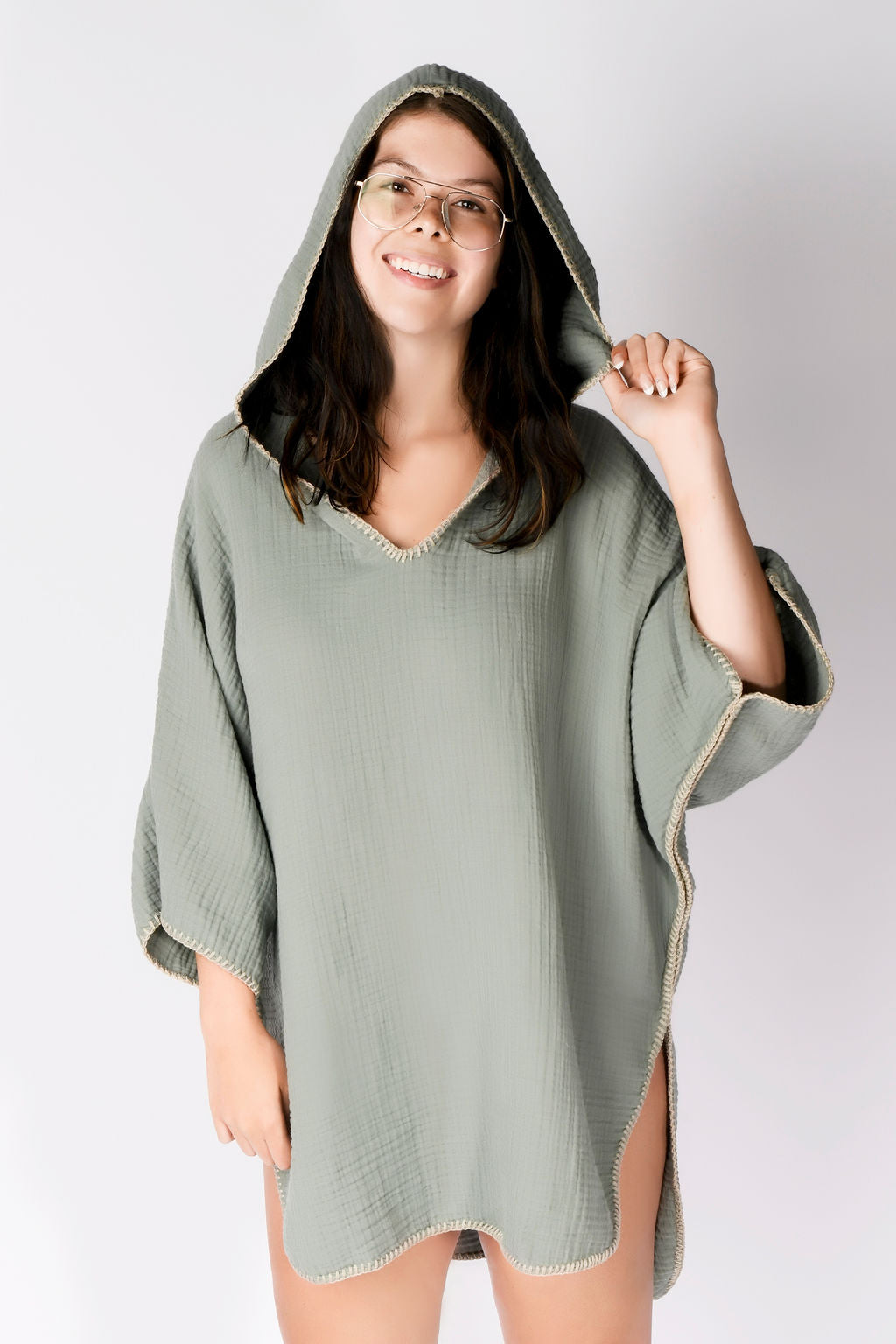 This hooded beach cover up is constructed from the same fluffy, 4-ply gauze fabrication as our robe, with an easy pullover shape and flattering curved hem. Toss in your bag and head to the beach, or wear after a dip in the pool. Also available in toddler sizes.