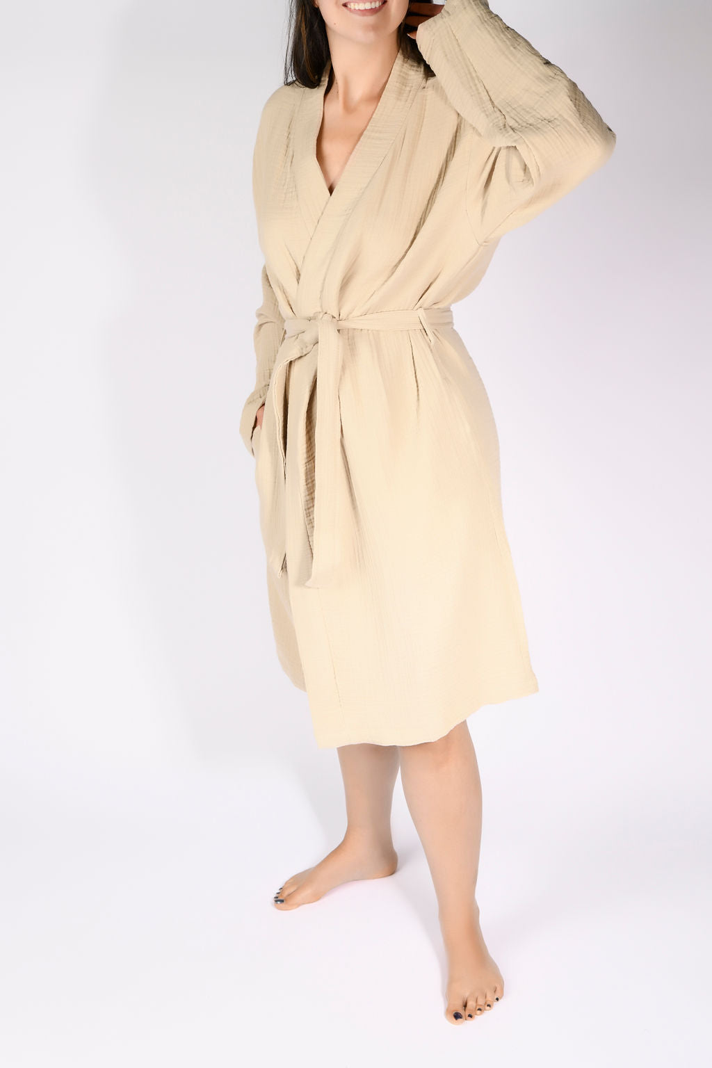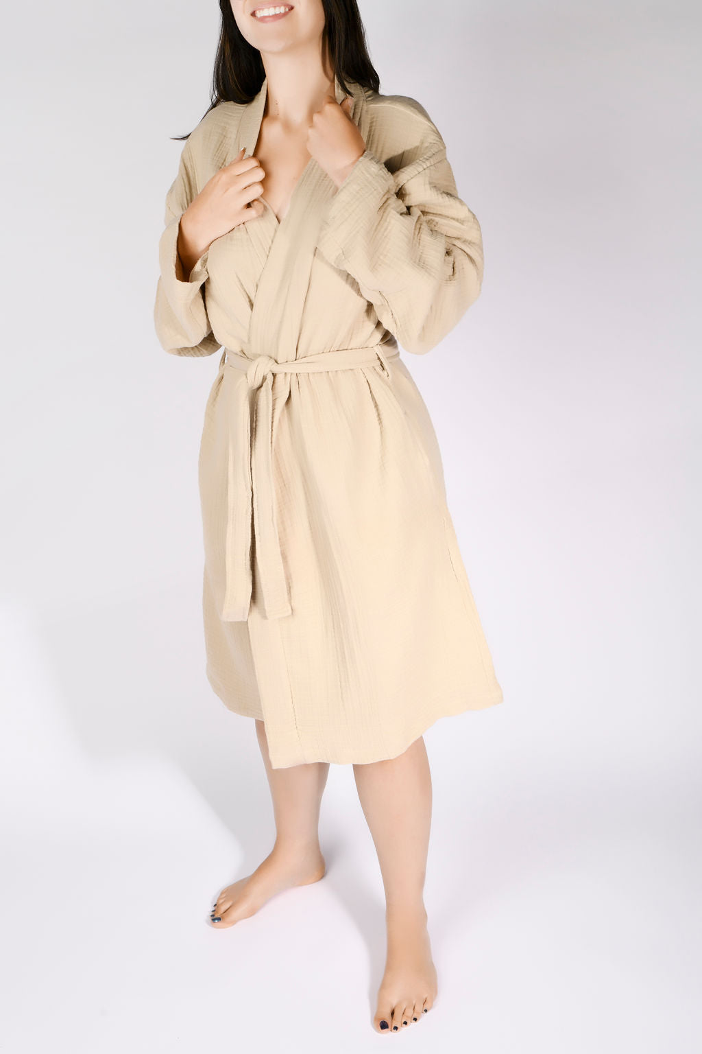 Easy and breezy lightweight lounging. Soft, light and luxurious, this super comfy robe features fluffy 4-ply gauze, a snug waist tie and two hidden side pockets. Made from premium 100% long-staple Turkish cotton and designed to have a relaxed, comfortable fit.