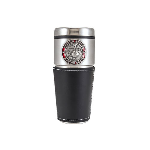 This stainless steel, 16oz, double-wall tumbler features a U.S. Marine Corps badge.