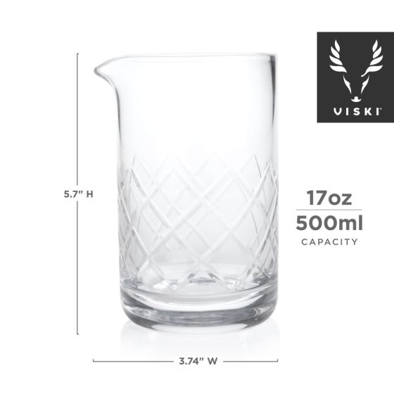 Designed and sized for expert bartending, the 500-milliliter professional-grade Viski Professional Lead-Free Crystal Mixing Glass accommodates one or two drinks and works smoothly in allegiance with our professional bar spoons and strainers. Features a thickset base, precision pours spout and strong geometrically faceted sides.